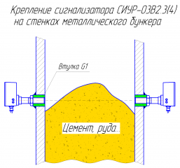 Depending on the object of installation and technological features of production there are several ways to mount level alarm sensors. The alarm can be installed both on the walls of the hopper and at its upper surface. In the latter case steel pipes with an inner diameter of at least 30mm should be used for transmitting of the probing signal to the control level. It should be noted that pipe length and its surface quality are not important.